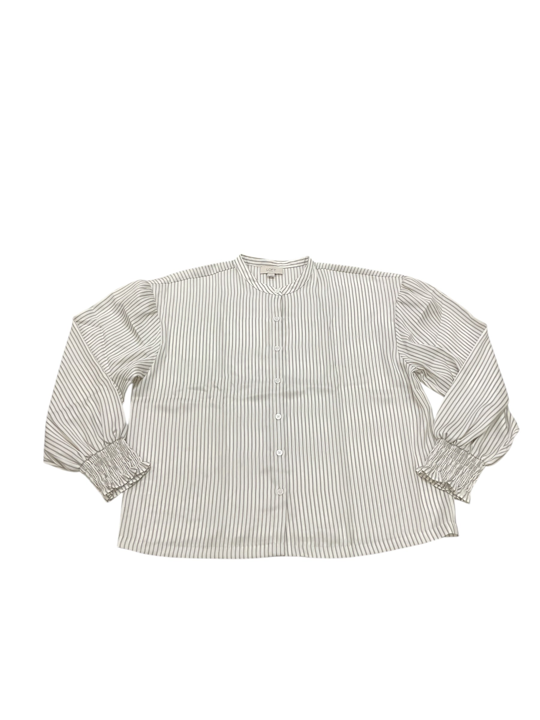 Blouse Ls By Loft In Grey & White, Size:M