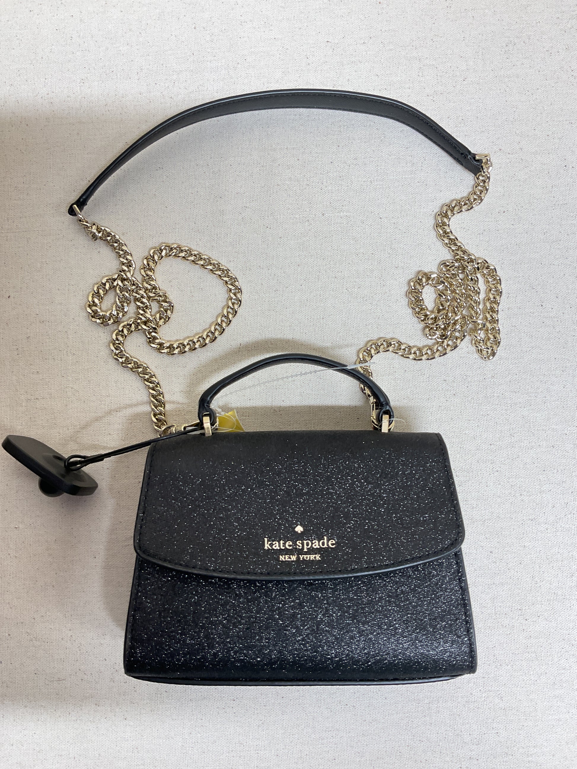 Handbag Designer By Kate Spade In Black & Gold, Size:Small