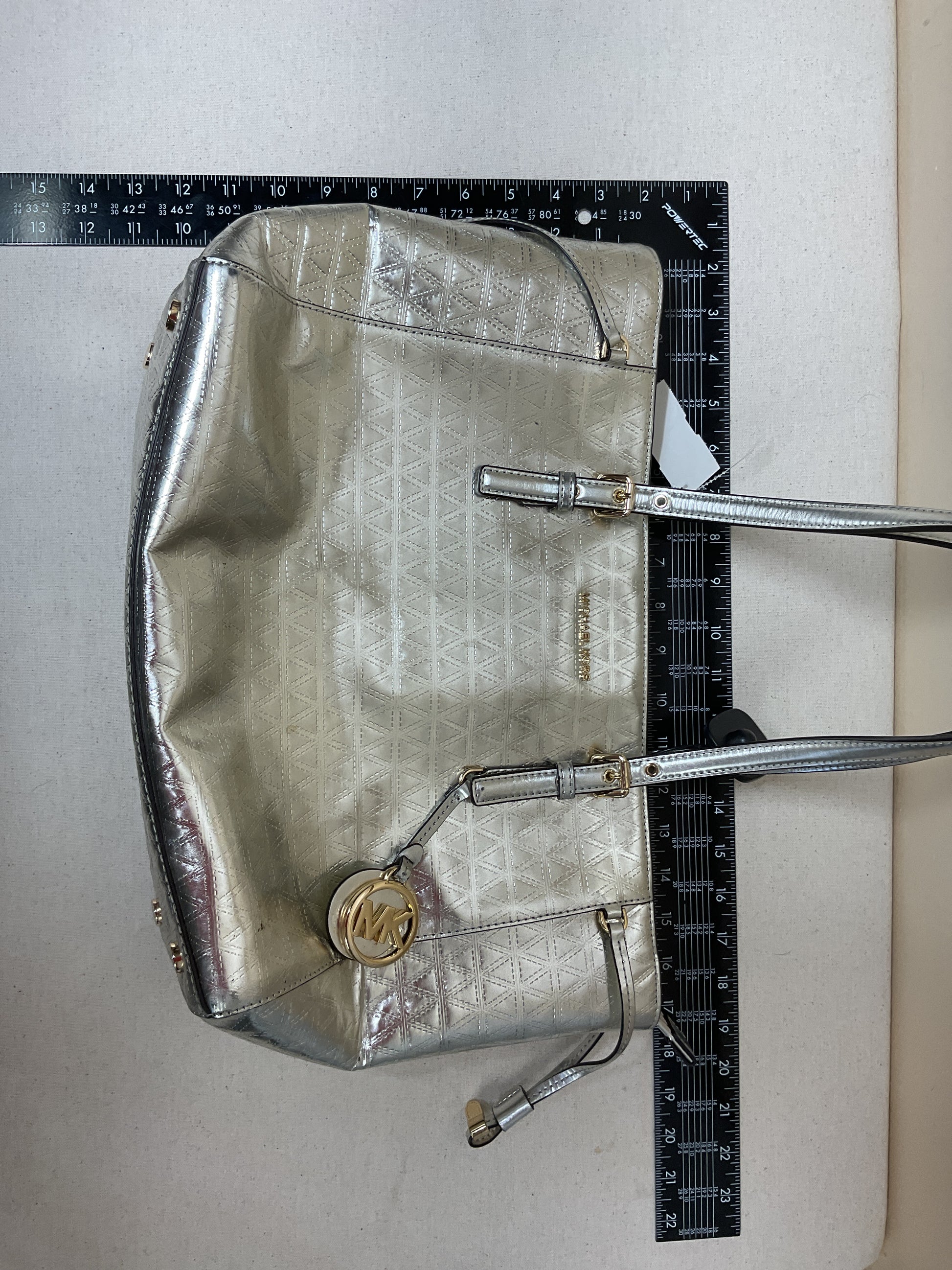 Handbag Designer By Michael Kors In Silver, Size:Large