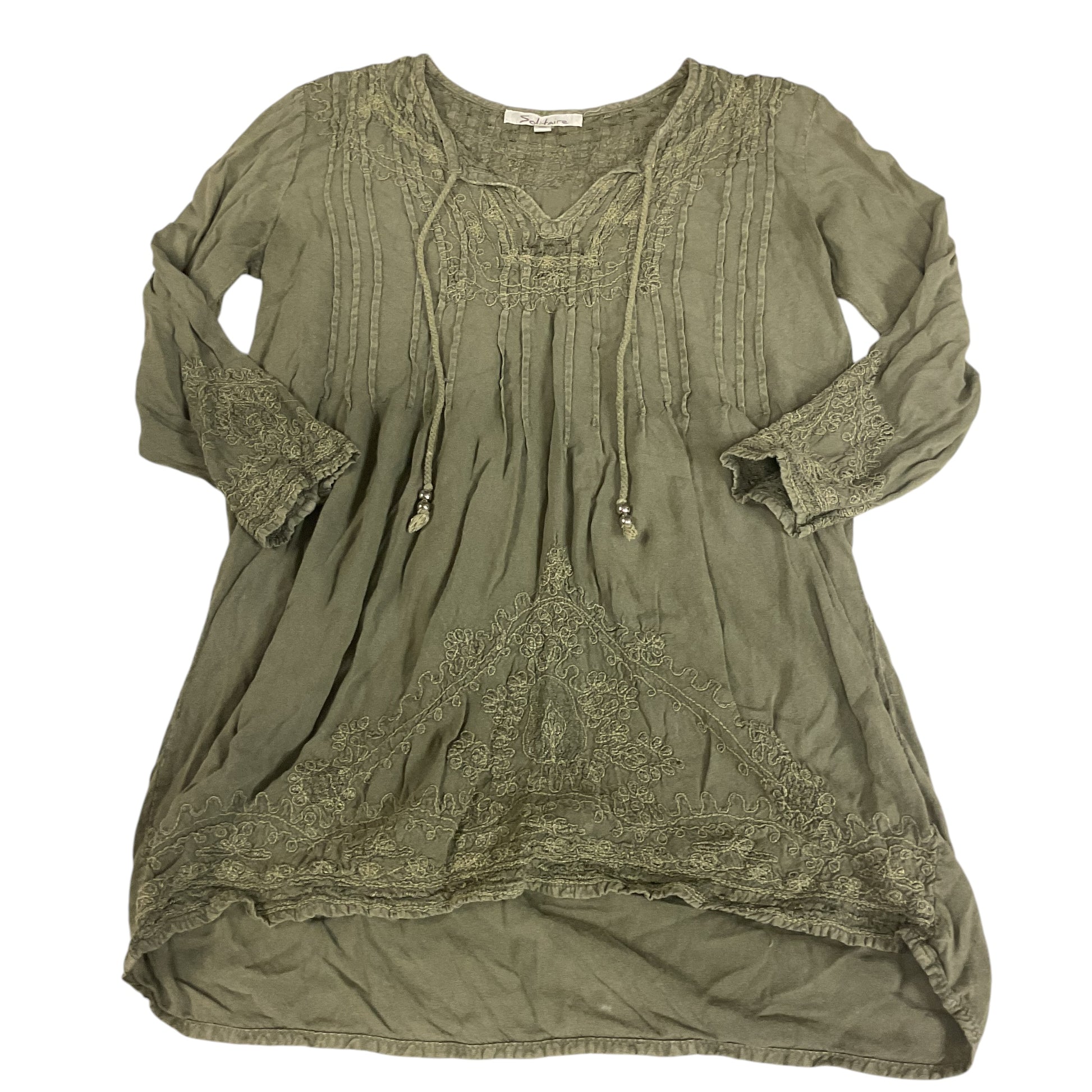 Top Long Sleeve By Solitaire In Green, Size: S