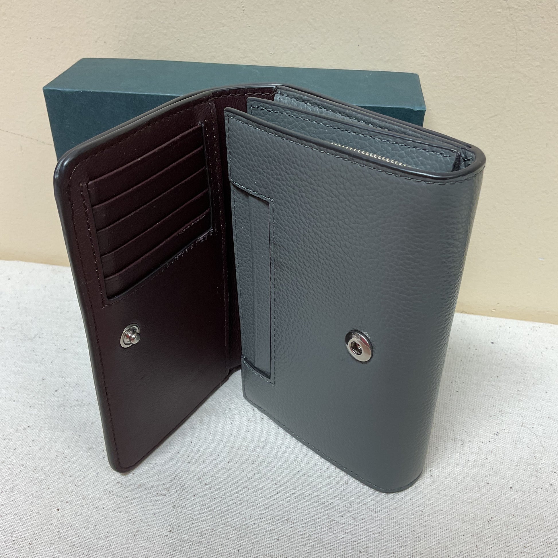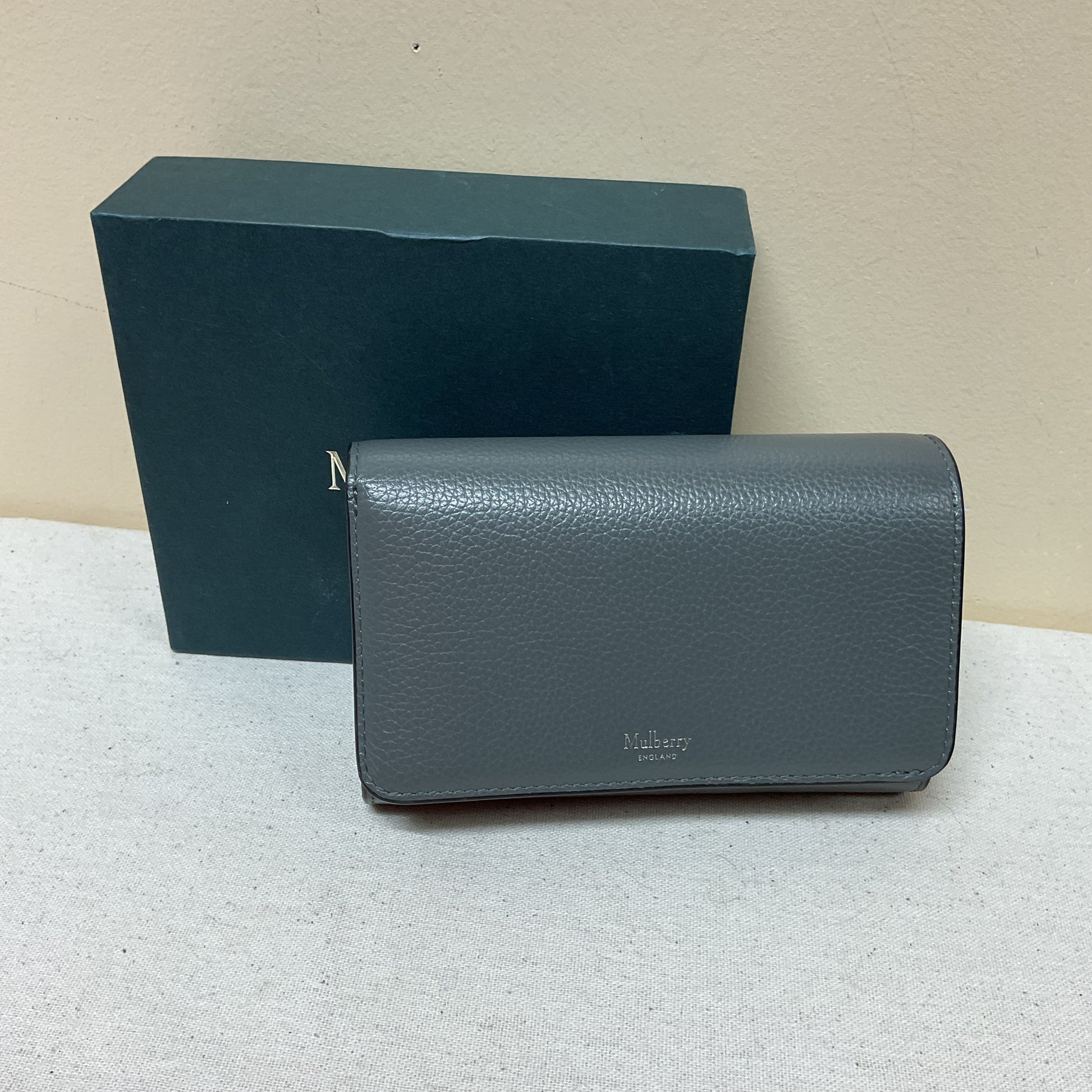 Indulge in luxury with the Mulberry designer wallet in sleek grey. Perfect size, exquisite craftsmanship, and timeless elegance make it a must-have accessory.